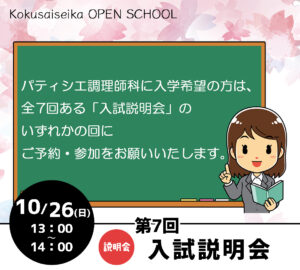 調理やお菓子作りに興味がある方、高等専修学校とは?などの説明会を行います。