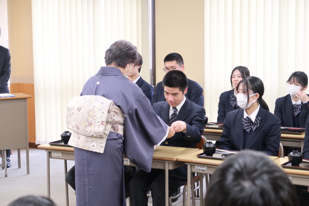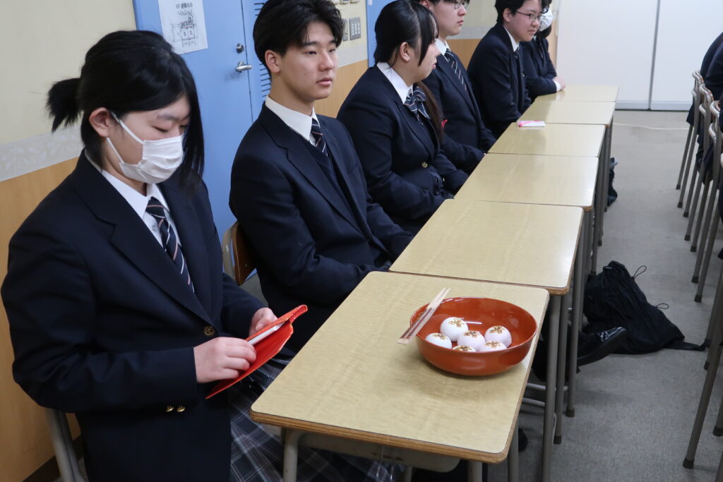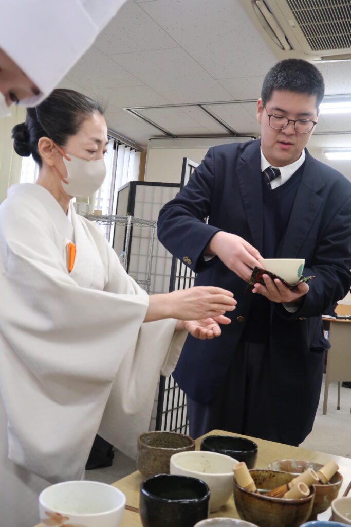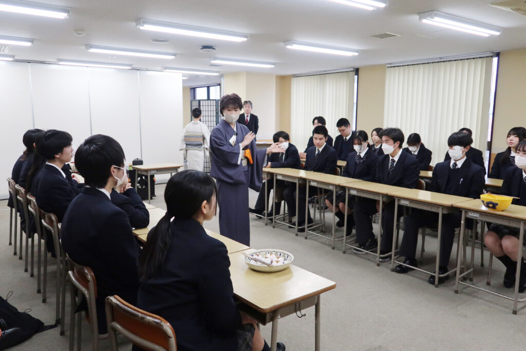 普段、茶道の授業を行っておりますが、また一味違う雰囲気で学習します。