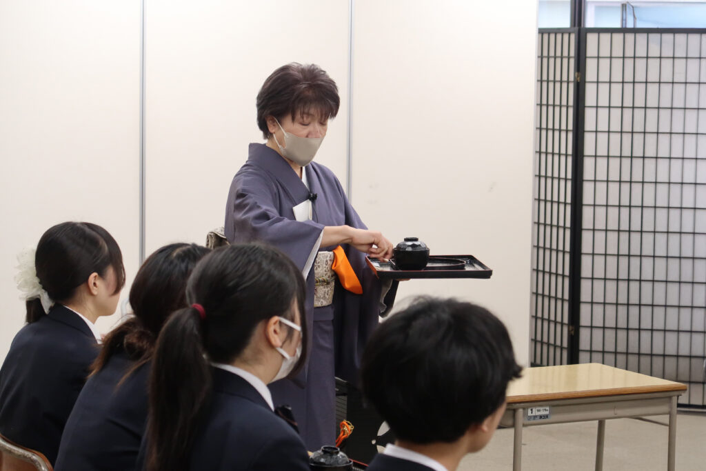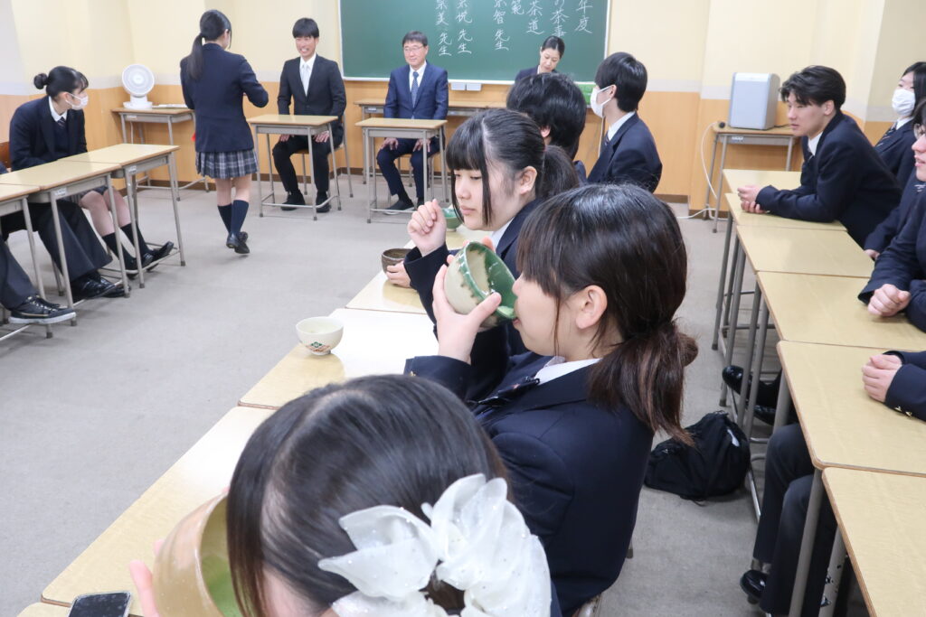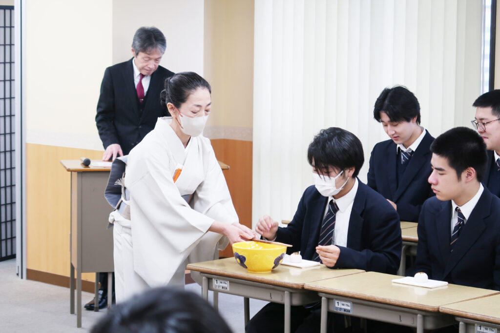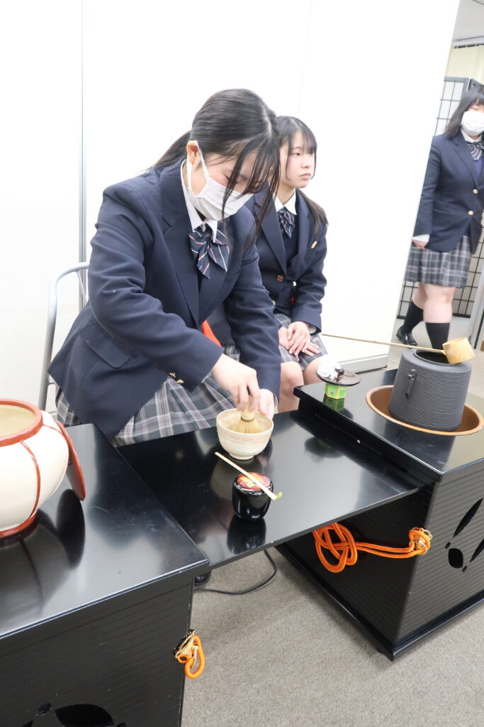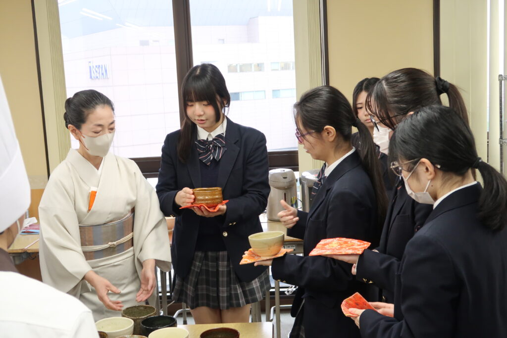 普段、茶道の授業を行っておりますが、また一味違う雰囲気で学習します。