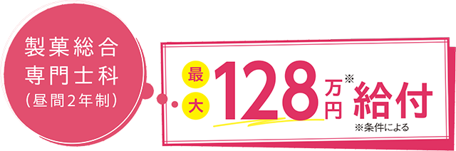 通常ならば2年間の実務経験が必要な「製菓衛生師」の受験資格を、「製菓総合専門士科」は1学年修了、「通信教育科」は卒業した時点で得ることができます。
