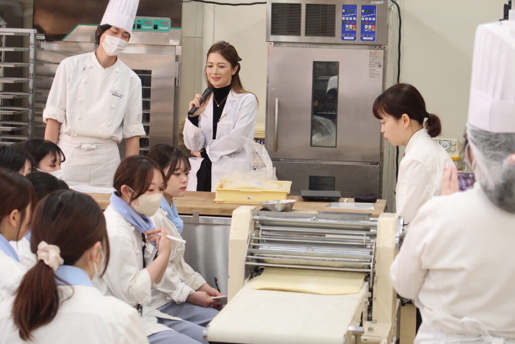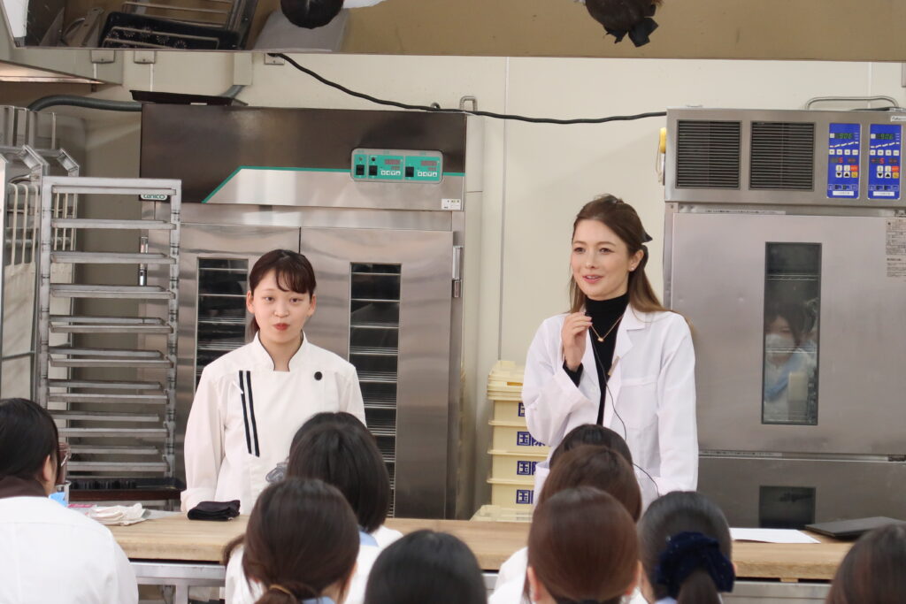 講師の先生は、(株)ふじ森 代表取締役 藤森もも子先生、(株)ふじ森 製パン部門 副統括 久保先生に来ていただき、